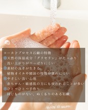 グリーンクレイ(粘土)がくすみのもとである古い角質、毛穴の奥の汚れを吸着して取り除き、保湿効果の優れたホホバオイルが透明感のあるつるんとまろやかな肌に洗い上げます。洗顔はもちろん、全身に使うことができる、肌に優しいオールインワン石鹸です。