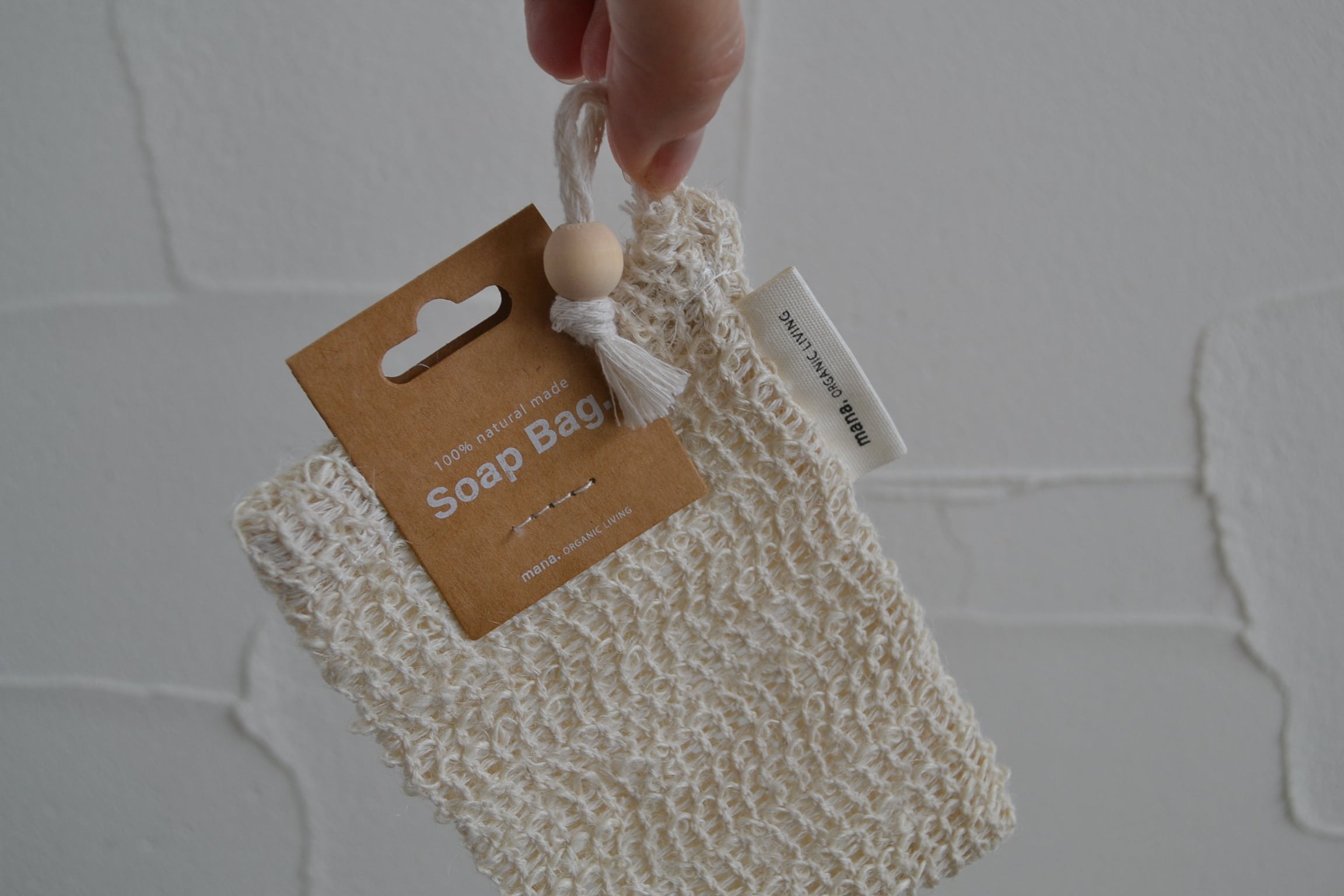 コットンとザイザル麻で作られた100%自然素材の、オシャレでエコなソープバッグです。